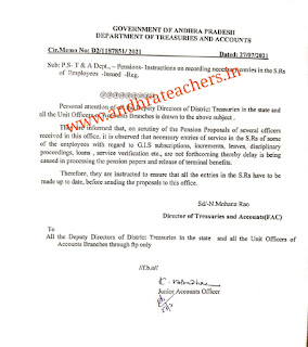 SR లో తప్పకుండా ఉండ వలసిన ఎంట్రీ ల పై Director of Treasuries వారి సూచనలు 3:21 AM – by Andhra Teachers 0 SR లో తప్పకుండా ఉండ వలసిన ఎంట్రీ ల పై Director of Treasuries వారి సూచనలు Email ThisBlogThis!Share to XShare to Facebook